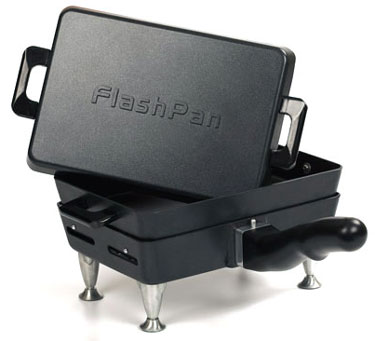 The FlashPan is a portable camping stove that burns solid fuel tablets instead of propane, butane or liquid fuels. The FlashPan is an all-in-one cooking system which includes a stove, a cooking pan and a reversible lid which is also a secondary cooking surface. The FlashPan’s compact, lightweight and portable design makes it an ideal cooking system for outdoor enthusiasts and an essential component in emergency preparedness kits. |